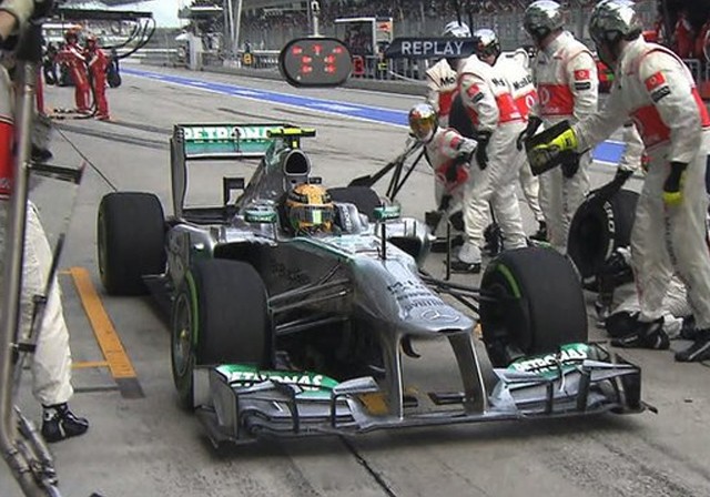 debaixo do capacete. Na corrida as duas Mercedes renderam bem e fizeram um